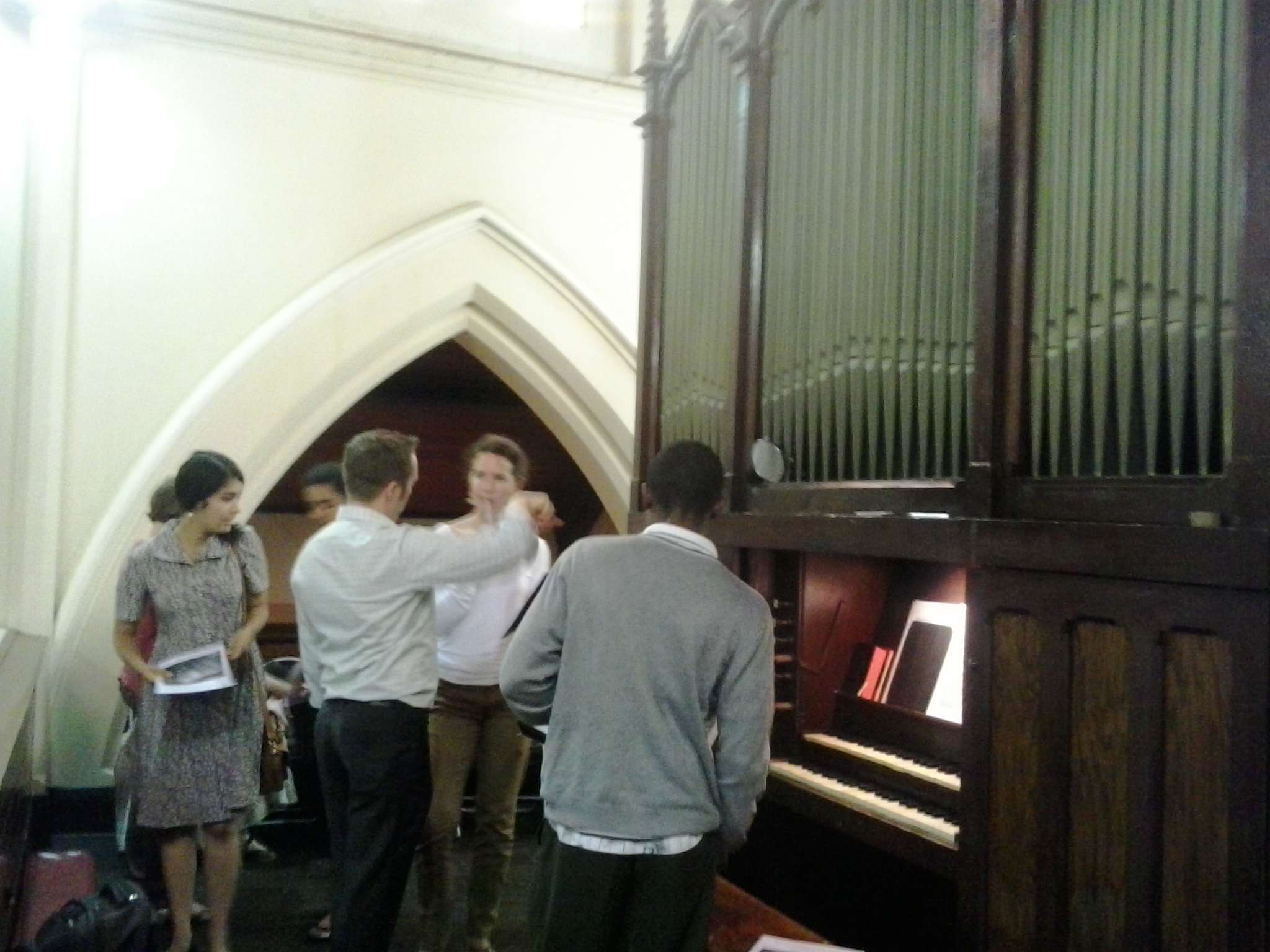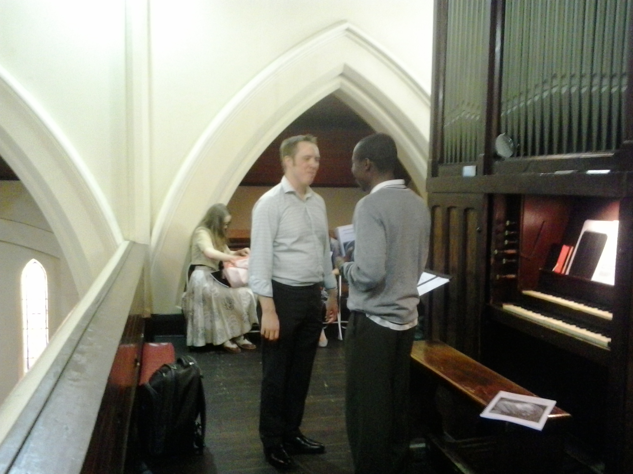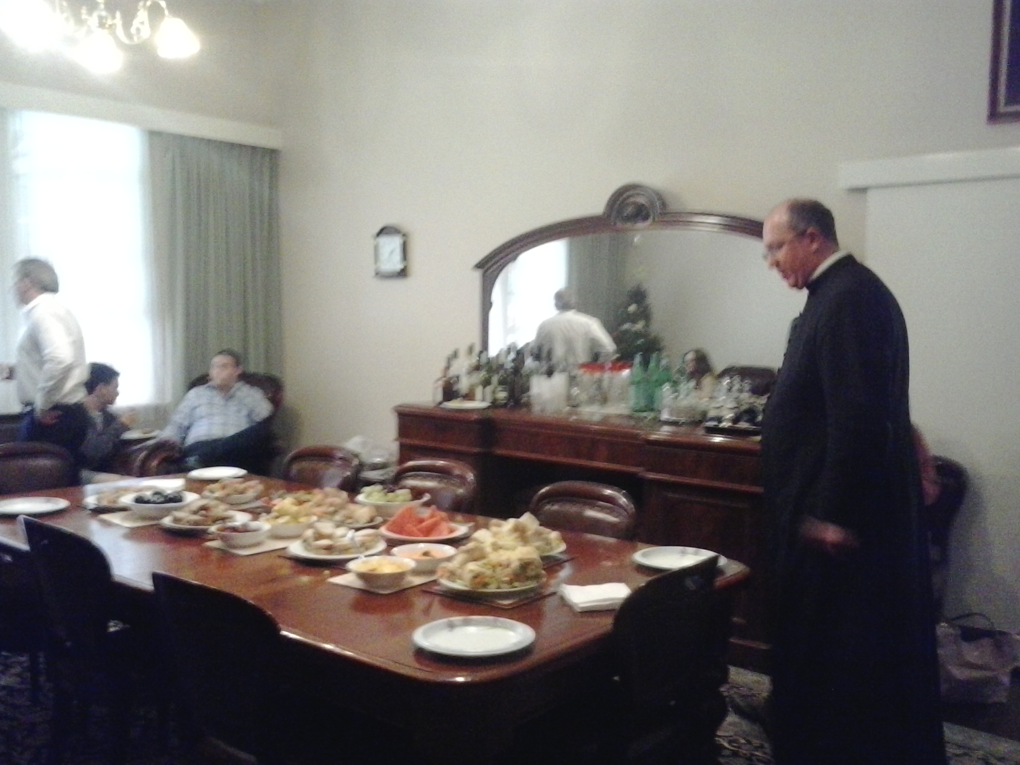 Za razliku od naših proba, stvar je shvaćena vrlo ozbiljno pa se nije pričalo, osim neizbježnog- ‘gdje smo sad?’ pitanja koje je uobičajeno na probama kad je zborovođa u elementu i misli da mu svi čitaju misli. No svaka čast našem dirigentu. Onako rumen, nasmijan i pun entuzijazma me podsjetio na nekadašnjeg dirigenta Roberta iz Palme. Uspio je nas dvadesetak, sabranih sa svih strana ujediniti i navesti da pjevamo neke stvari i po prvi put kao da odavno vježbamo skupa. I to je ljepota latinskog pjevanja, mogu to i djeca (ako ne vjerujete pogledajte donji video). Bio mi je zanimljiv i sam početak. Počeli smo s vježbama rastezanja, zijevanja i izgovaranja težih suglasnika, bez uobičajenih vježbi upjevavanja. (Ne znam što bi moja časna i zboraši, koji u prosjeku imaju sedamdeset godina rekli na to.) Nakon dva i pol sata pjevanja bez pauze naš dirigent je bio zadovoljan: imao je spremnu misu za sutra! Priznajem da je bio pravi gušt pjevati ali i da je posljednjih dvadeset minuta već bilo pomalo naporno. No kako su naši domaćini predvidjeli ovakvo stanje, pripremili su nam ručak u župnom uredu. Tu nas je dočekao sveprisutni župnik i rektor otac Glen Tattersall koji je uistinu pravi domaćin. Njega ćete prvog vidjeti u njegovoj reverendi (uvijek je u njoj) kad dođete u crkvu ali će vas prvi dočekati i na izlasku iz crkve (još kad vam kažem da nam je i imena zapamtio a ja sam njegovo morala potražiti na internetu).
