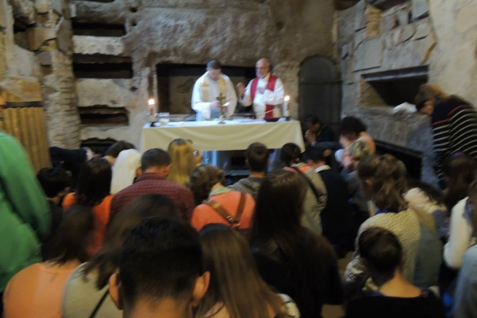 Misa se slavila u kapelici sv. Kaja, pape rodom iz rimske Dalmacije, koji je, čini se, Crkvom upravljao od 283. do 296. godine. Svećenik je u svojoj propovijedi podsjetio na značaj Euharistije, koja bi trebala biti središte života svakog kršćanina. Ljudi koji su se skrivali po katakombama, bili su spremni dati svoj život za Euharistiju, mnogi od njih i jesu govoreći pred sucima: “Mi bez Euharistije ne možemo!“- a kakvi smo mi po tom pitanju? Jesmo li spremni umrijeti za Krista? Usput, ovaj cijeli put je imao naglasak na autentičnom kršćanstvu koje podrazumijeva žrtvu i naši svećenici nisu propustili ni jednu priliku da nas podsjete upravo na to.