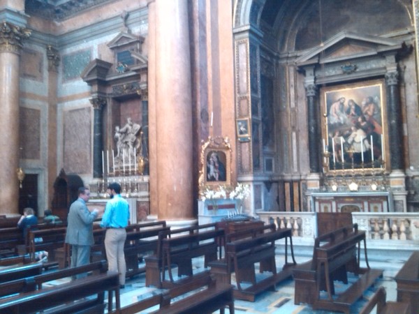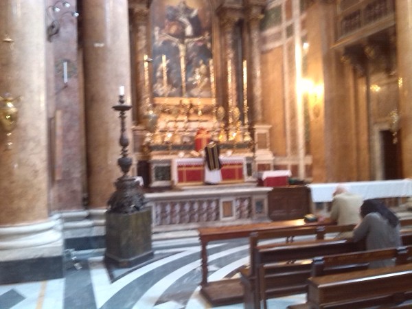 Naravno, pripremio sam se za svetu misu u večernjim satima i konačni mir, koji sam tako željno očekivao nakon posjeta ostalih crkvi u Vječnome gradu. Kada sam ušao u crkvu, nekih dvadeset minuta prije mise da bih izmolio krunicu, bio sam tamo jedina osoba i tako je bilo sve do samog početka kada je ušlo nekoliko studenata i starijih Talijana u izglancanim odijelima. Na kraju je na misi bio mali broj vjernika (Italija je igrala utakmicu s Costa Ricom u to vrijeme) a nije bilo ni ministranta. Svećenik je nosio crnu misnicu, pa sam pretpostavio da je slavio misu zadušnicu za ubijenog svećenika Bratstva u Americi koji je tragično poginuo u oružanoj pljački sakristije samo nekoliko dana prije.